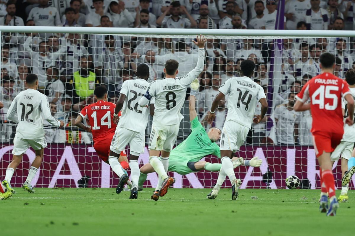 El encuentro comenzó con un claro dominio del Bayern Múnich, que hizo que el Bernabéu pareciera el Allianz Arena. A los ocho minutos, Upamecano desperdició una ocasión clara que luego Carreras deshizo en la línea. El Madrid reaccionó y empezó a pisar el área de Neuer, que detuvo a Mbappé y luego trabajó ante un disparo de Vinícius.