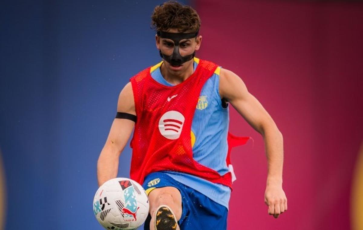 Fermín López entrenó este martes en la Ciutat Esportiva Joan Gamper con una máscara protectora. El mediapunta, que recibió una patada en la cara del portero del Atlético, Marco Danilo Musso, el miércoles en la Champions, vuelve a sumarse a sus compañeros antes del partido de LaLiga contra el Celta.