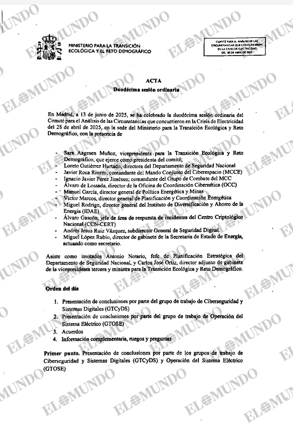El informe final del comité de análisis del apagón del 28 de abril de 2025 declara que el colapso eléctrico fue el peor de la UE en veinte años y que su origen es un fenómeno multifactorial. La hipótesis inicial de un ciberataque quedó descartada y el documento no asigna responsabilidad directa al Gobierno.