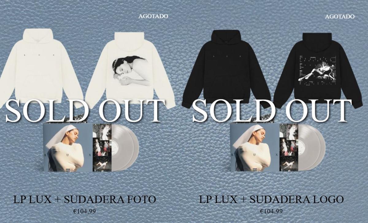 El merchandising de Rosalía se agota en su página web tras el éxito del 'Lux Tour'. La artista ha agotado existencias de varios productos en su tienda oficial. Los fans pueden encontrar merchandising en los conciertos.